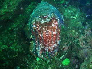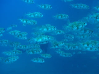 マストの周りには、大きなツバメウオが優雅に泳いでいて、船首の方には、グローブフィッシュ(ハリセンボン)が数百匹いつものように群れていました。
