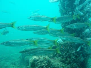 マストの周りには、大きなツバメウオが優雅に泳いでいて、船首の方には、グローブフィッシュ(ハリセンボン)が数百匹いつものように群れていました。