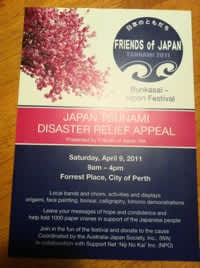 まずは、4月9日にパース市内で行われた「Japan Tsunami Disaster Relief Appeal」のイベントです。