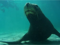 そして、水の中に入ると、可愛いらしいアシカ君が近寄って来てくれました
