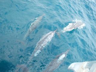 ボートに乗船してしばらく走っていると、なんと!イルカちゃん達が大勢で出迎えてくれました!