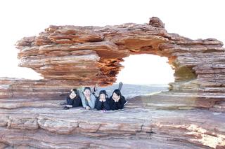 ここ「カルバリ・ナショナルパーク」では、岩に自然と穴が空いている、”ネイチャーズ・ウィンドウ”と言われる観光スポットに立ち寄りみんなで記念撮影。