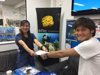 ダイビングを初める切っ掛けが、水族館のAQWAで水中体験をしたYoichiさんと、語学留学中のHirokoちゃん。