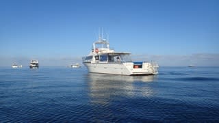 セスナ機2台が上空からジンベイを探し、見つけると全部のボートに無線が入り、海に入って一緒に泳ぎます。