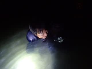 (3本の足を捉えることができ、穴に入って行かないように、ずっと抑えていたところ握力がもう無かったそうです。)