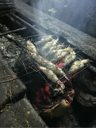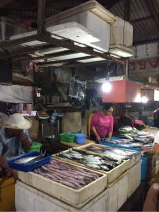 手長エビに、イカ、ハマグリ、ギンガメアジを市場で買って、とりあえず山ポンについて行きます。