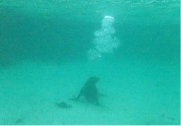 アシカさんによってやはり性格が異なり、いたずら好きなのか水底で止まっては私たちが潜るのを待ち、潜りに行くと“こっちだよー”とあっちへ行ってはまた私たちが来るのを待ったり、毎回立ち止まってはこっちを向いて、居場所を教えてくれるかのように泡を出してくれます。