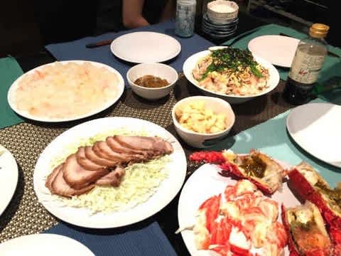 メインは伊勢エビの刺し身&湯でたて伊勢エビ! そして脇役になってしまった、チャーシューとちらし寿司。