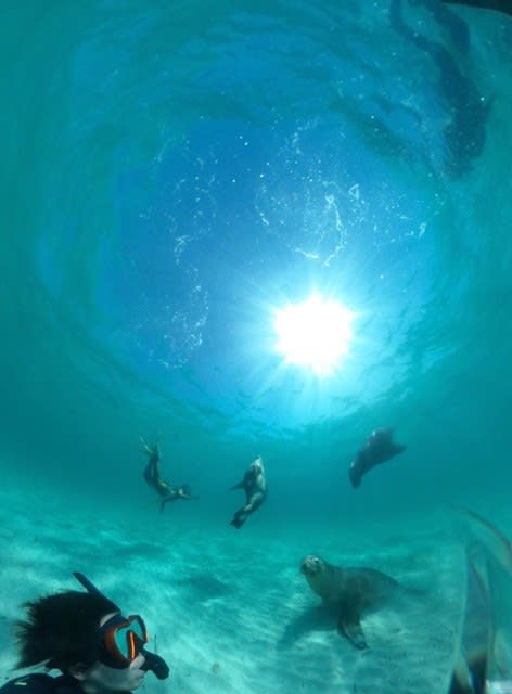 一緒に素潜りしている間は楽しそうに遊んでくれるけど、水面で休憩してたらアシカくんたちはつまらなくなって、ロケットのような速さで島に帰っていきました💥🚀😳!爆笑