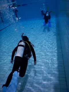 2日目の海に向けて、中性浮力を感じながらプールで泳ぐ練習です💭