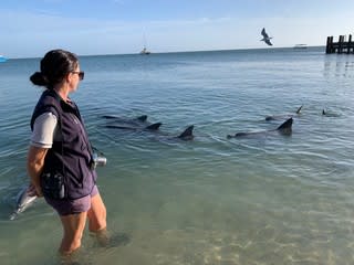 毎日決まった時間に、イルカ達が自然とビーチに集まって来るのです!