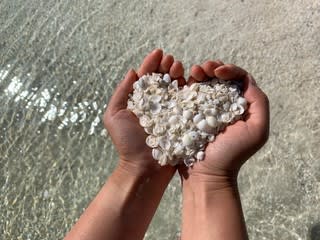 地面をよく見てみると、真っ白の貝殻が辺り一面に広がっています