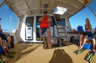 まずグループ1の10名がマスク&フィンを装着し、ボートの後ろに固まって待機します。