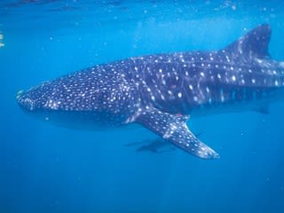 今回は5頭の「ジンベエザメ」と泳ぐことが出来き、最後の方はもう泳ぎ疲れて泳げないくらい「ジンベエザメ」と一緒に泳ぐことが出来ました〜