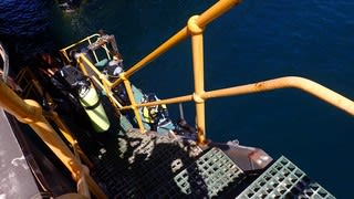 高さ3mほどの高さからジャイアントエントリーし、潜降すると!
