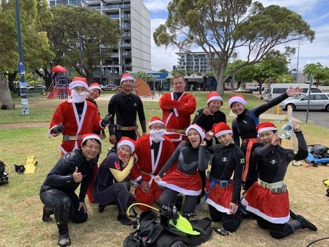 参加者みんなクリスマスのコスチュームを身に着けてダイビングを楽しみました!