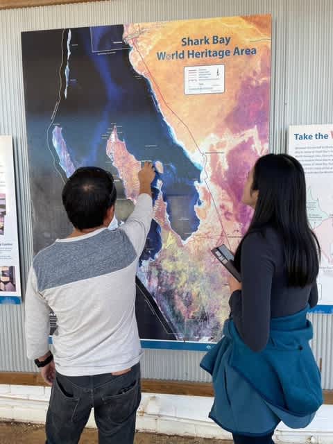 ランチ休憩後は、国道1号線を北上し、世界遺産(World Heritage)の「シャーク・ベイ(Shark Bay)」へと向かいます。