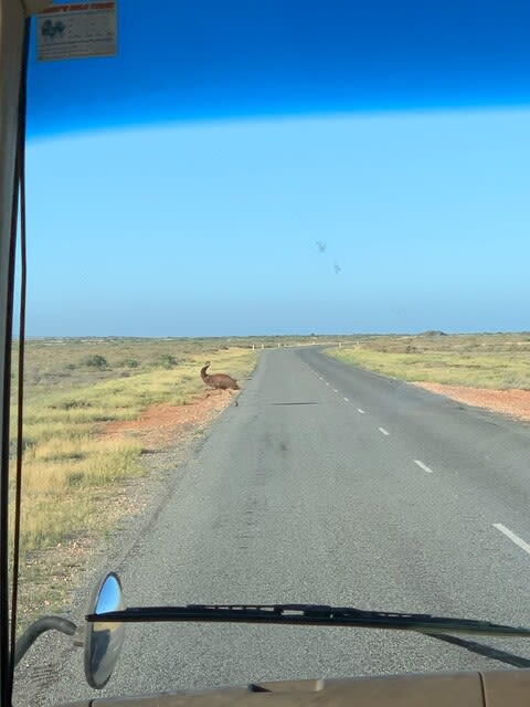 ボート乗り場ままでの道中は野生のエミューが道路をゆっくり横切っていきました!