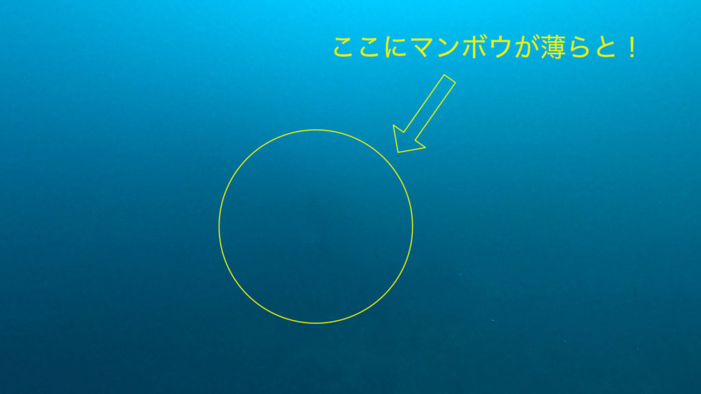 現地ガイドさんが深い深度から”マンボウ”を発見してくれました!ちょっと遠かったのではっきりと写真には収めることができなかったのがちょっと残念です…。